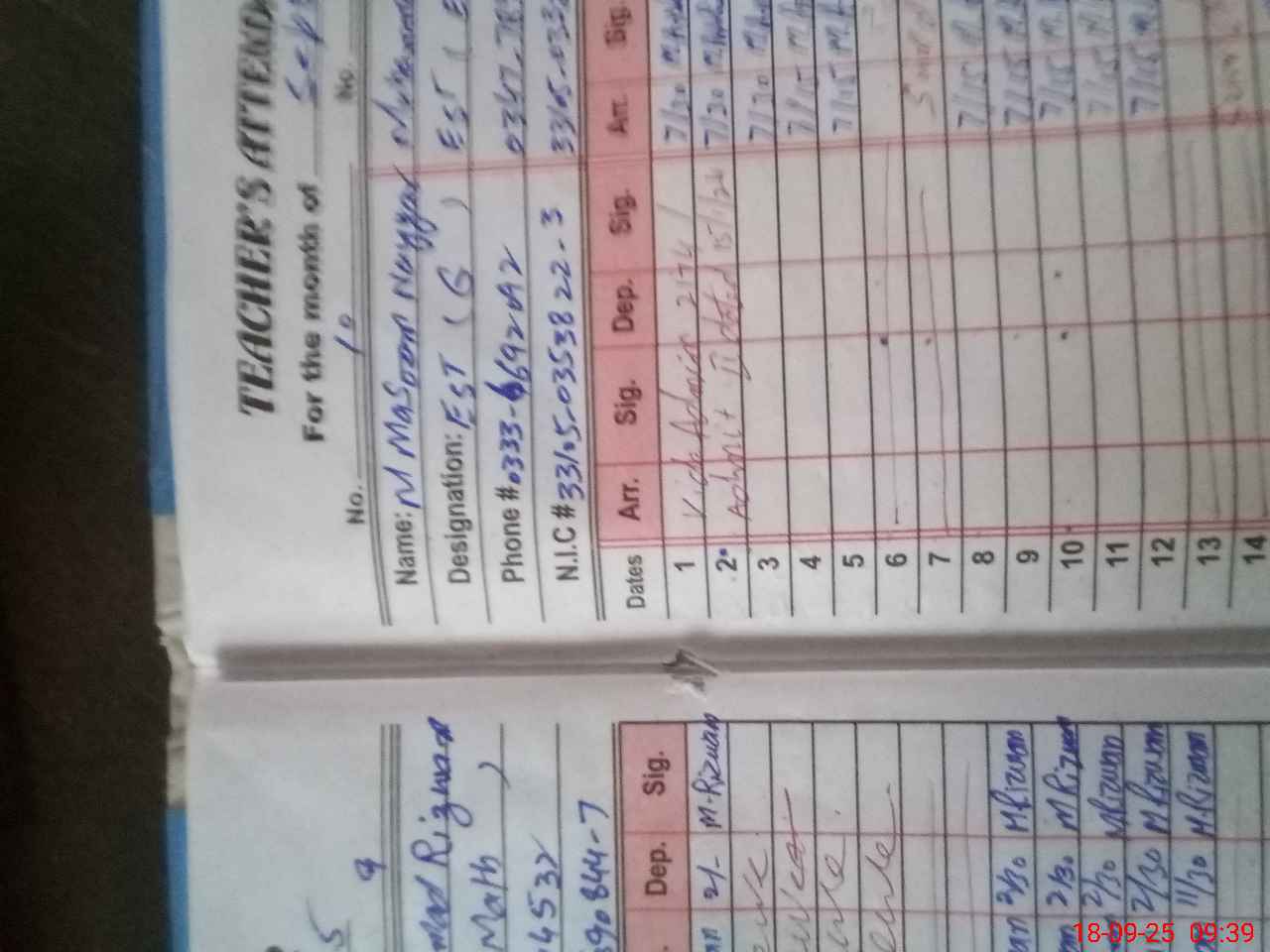 | Name: Is**** Al**** Designation: (School Headmaster's/Headmistress's) SSS Phone/Cell Number: 03**** |