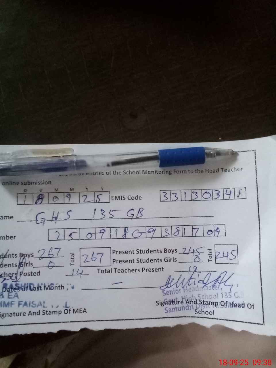 | EMIS Code: 33130341 | Name of School: GHS CHAK 135 GB PO IFFAT ABAD SAMUNDRI FSD | |||