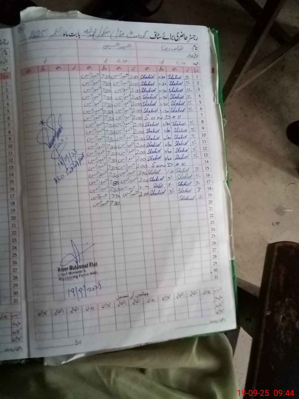 | Name: Ta**** sh**** Designation: (School Headmaster's/Headmistress's) ES.T.(Science) Phone/Cell Number: 03**** |