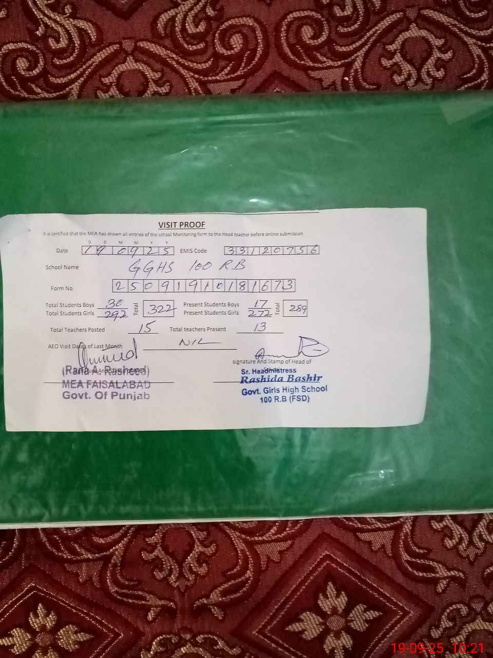 | EMIS Code: 33120756 | Name of School: GGHS CHAK 100 RB | |||