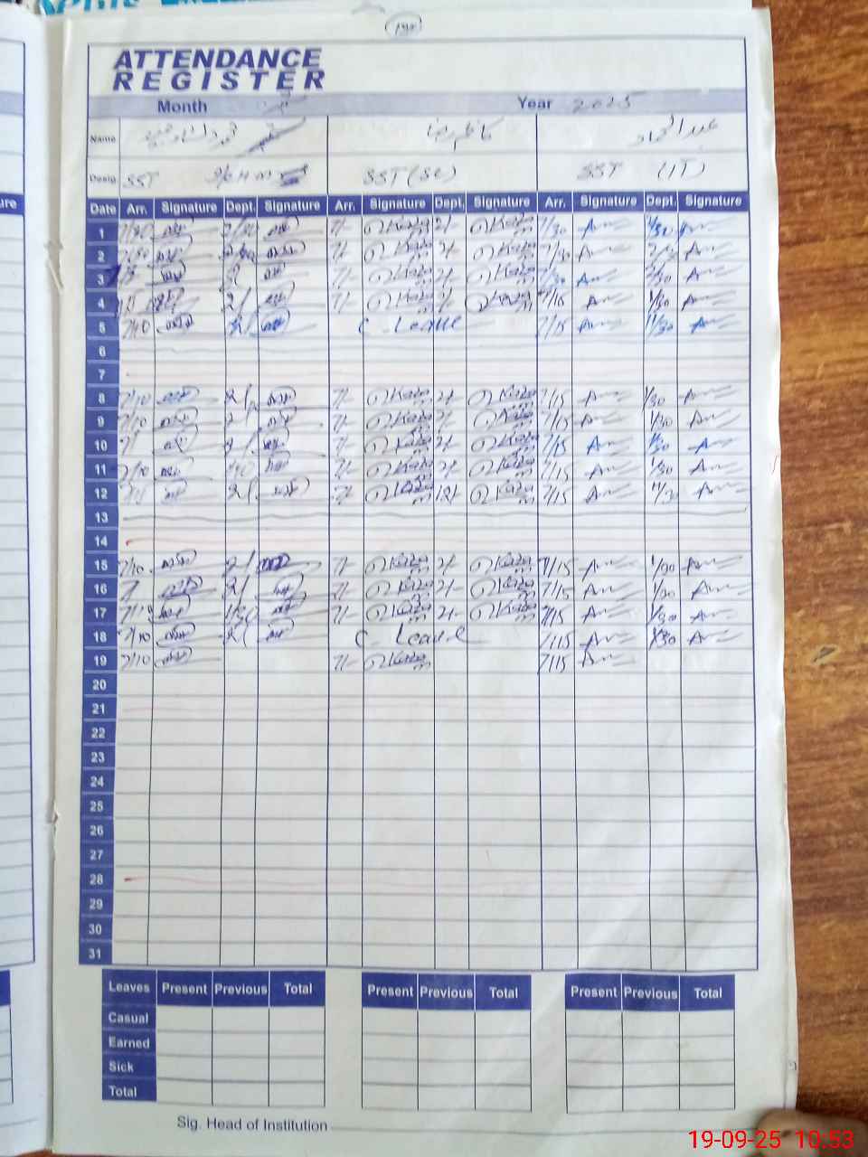 Leave Type | Remarks for today (Leave,Training, Exam,Absent,Late, Other duty) |