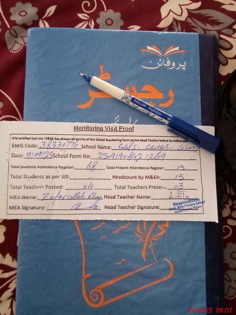 | EMIS Code: 38330776 | Name of School: GGPS CANAL COLONY PIPLAN | |||