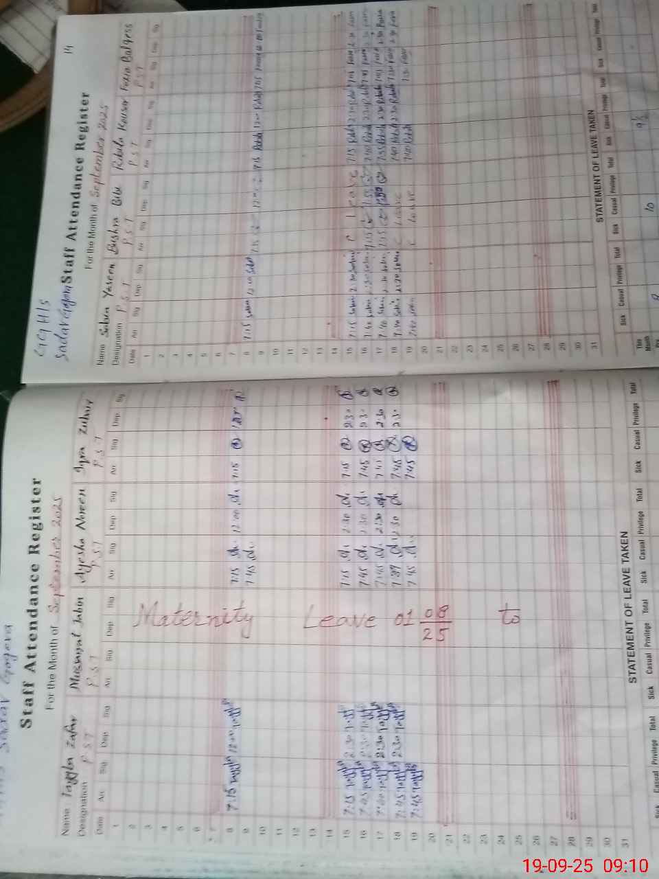 | Leave | Duty | Absent | Maternity | Medical | Ex- Pak |