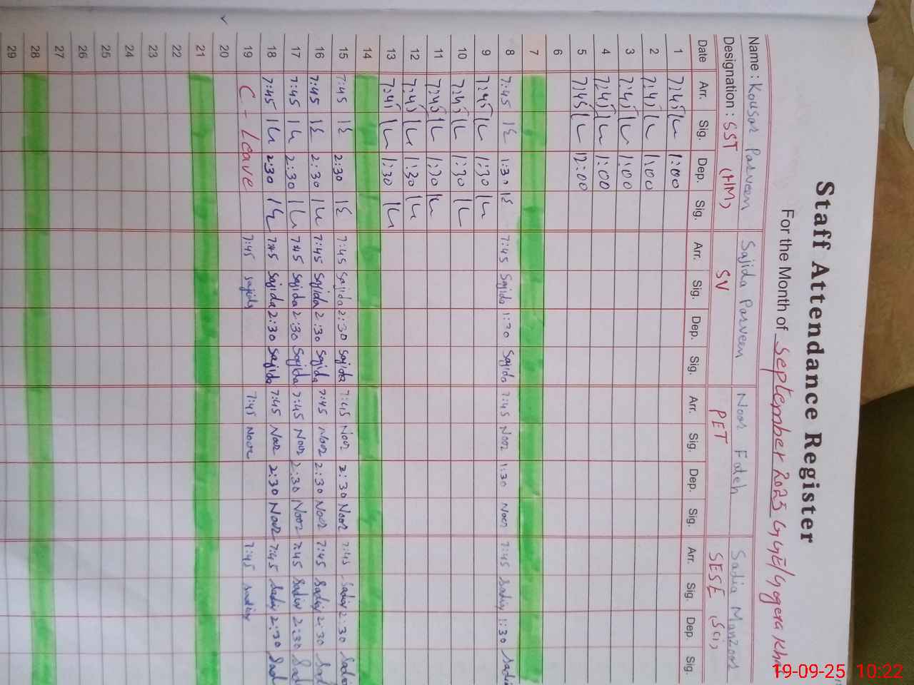 | 35**** | Sa**** Na**** | PST | Regular | 22 | 0 | 0 | 0 | 22 | 0 | 0 | 0 | 0 | Maternity |