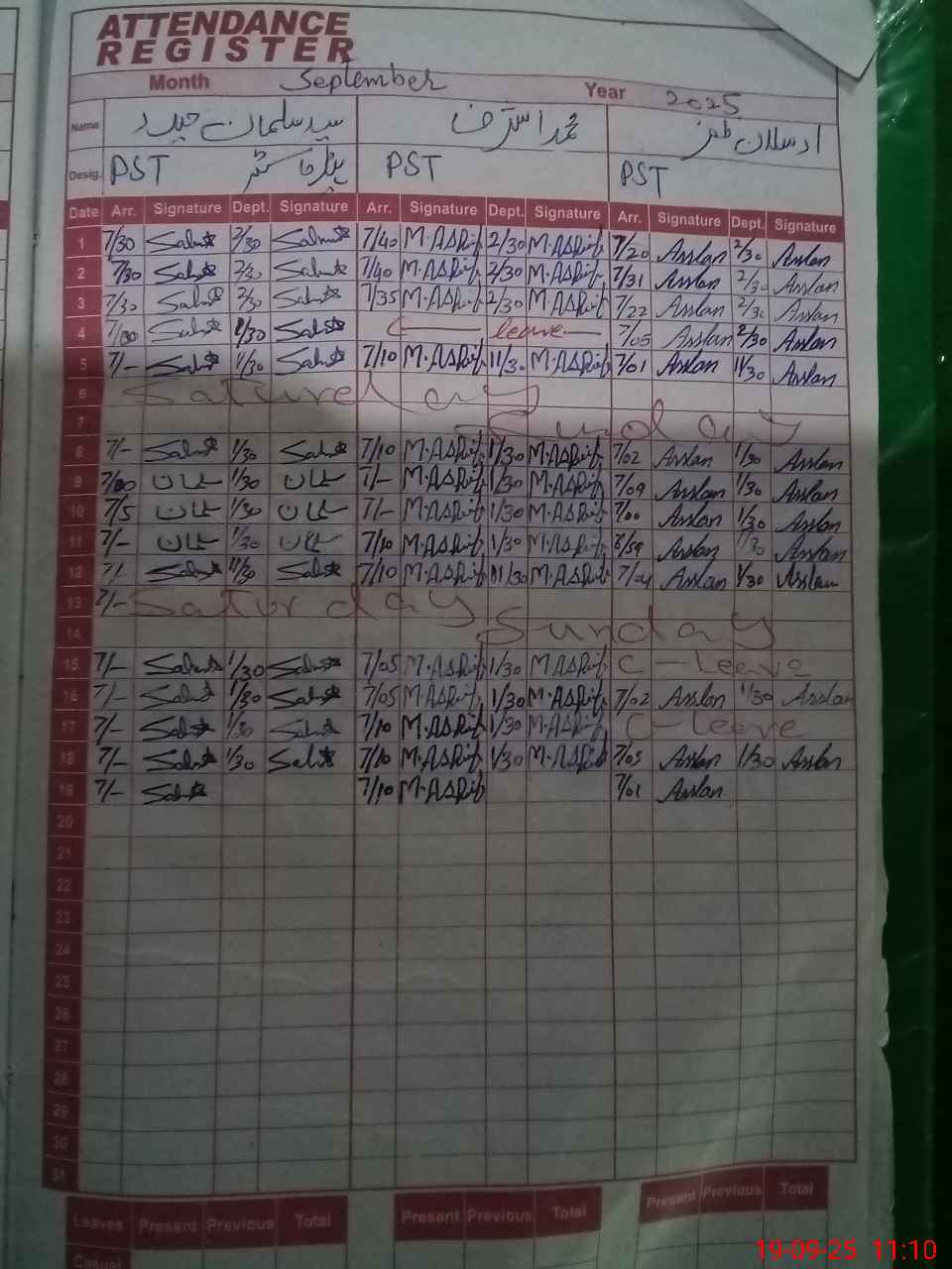 | 33**** | Ha**** Ha**** Kh**** | ESE | Contract | 0 | 0 | 0 | 0 | 0 | 0 | 0 | 0 | 0 | Absent (Un-Authorized) |
