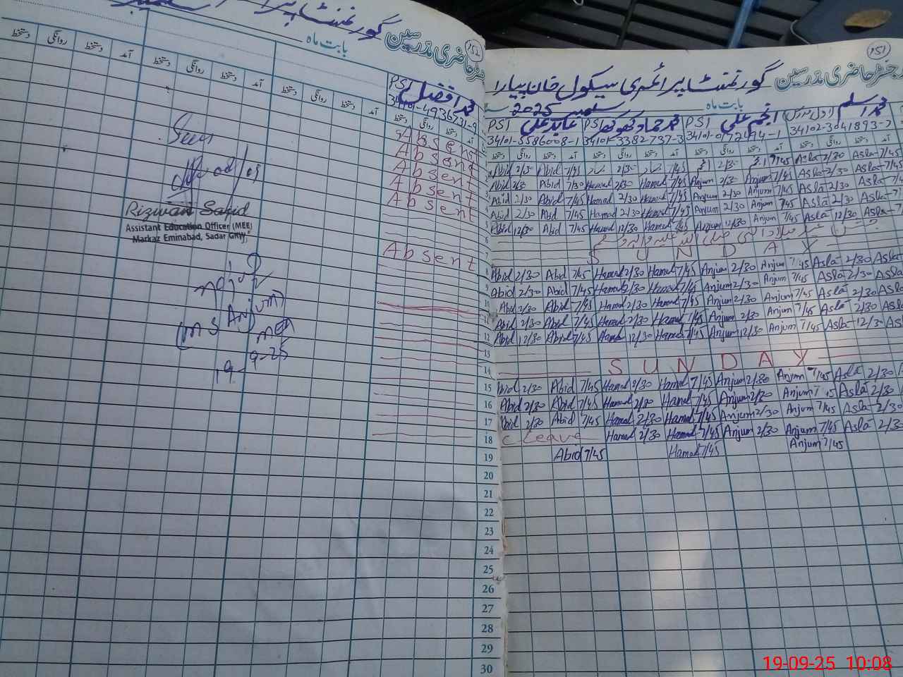 | Name: Mu**** As**** Designation: (School Headmaster's/Headmistress's) PST Phone/Cell Number: 03**** |