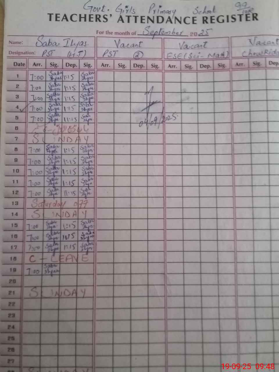 | Name: Sa**** Il**** Designation: (School Headmaster's/Headmistress's) ESE (SCI-MATH) Phone/Cell Number: 03**** |