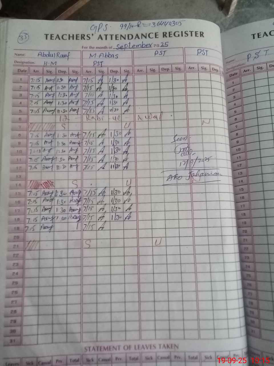 | Name: Ab**** Ra**** Designation: (School Headmaster's/Headmistress's) PST Phone/Cell Number: 03**** |