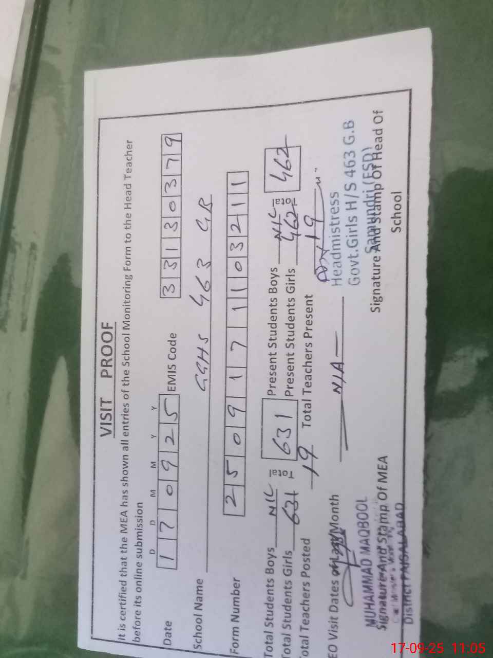 | EMIS Code: 33130379 | Name of School: GGHS CHAK NO 463 GB | |||