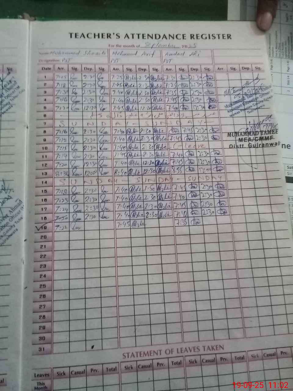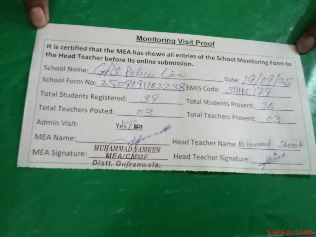 | Name: Mu**** Sh**** Designation: (School Headmaster's/Headmistress's) PST Phone/Cell Number: 03**** |