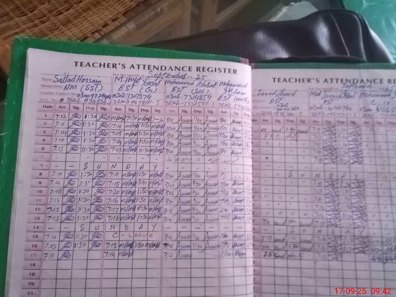 | Name: SA**** HU**** Designation: (School Headmaster's/Headmistress's) S.S.T Phone/Cell Number: 03**** |