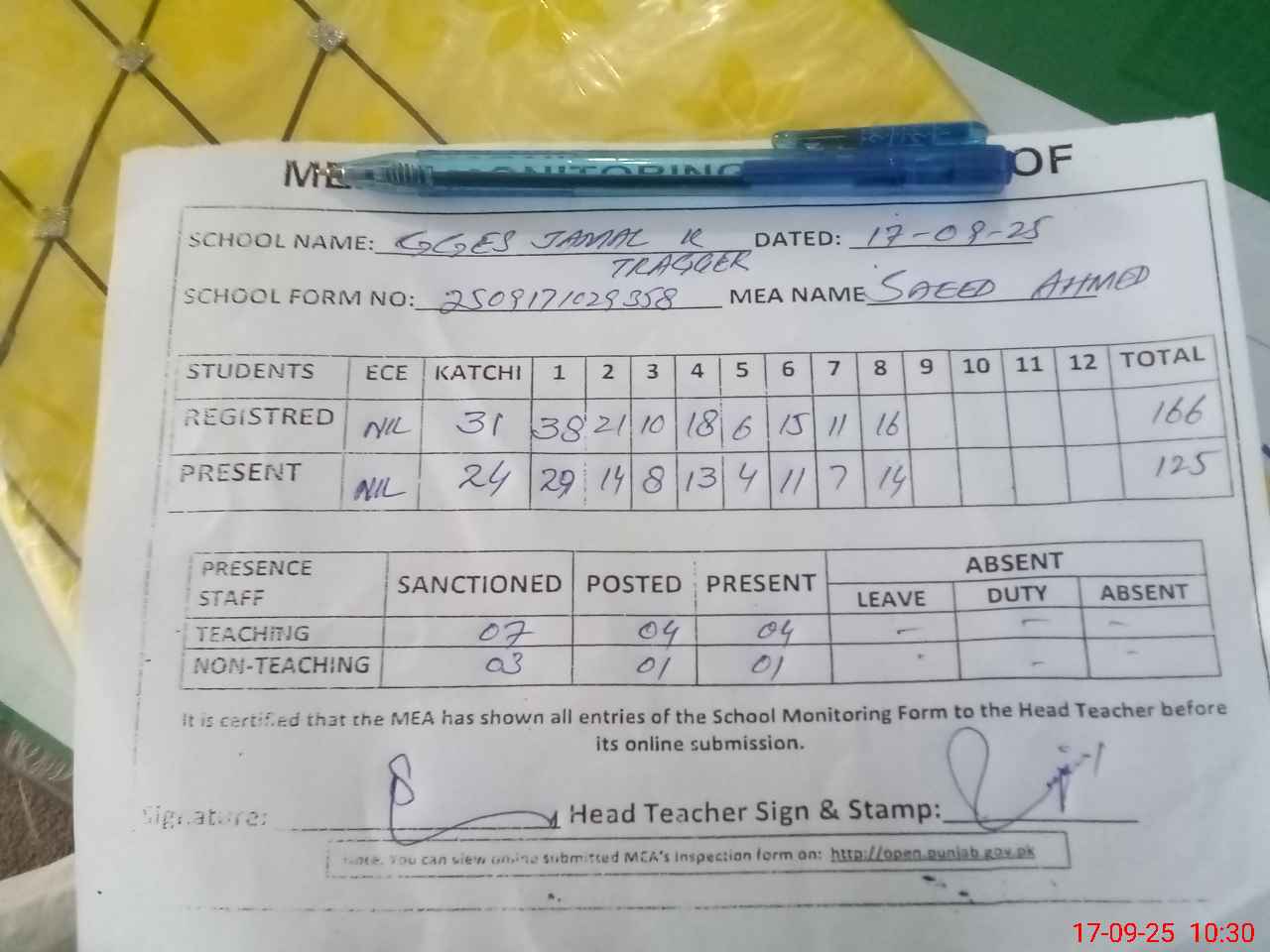 | EMIS Code: 36410500 | Name of School: GGES JAMAL KAY TRAGGER, NAWAN SHEHR | |||