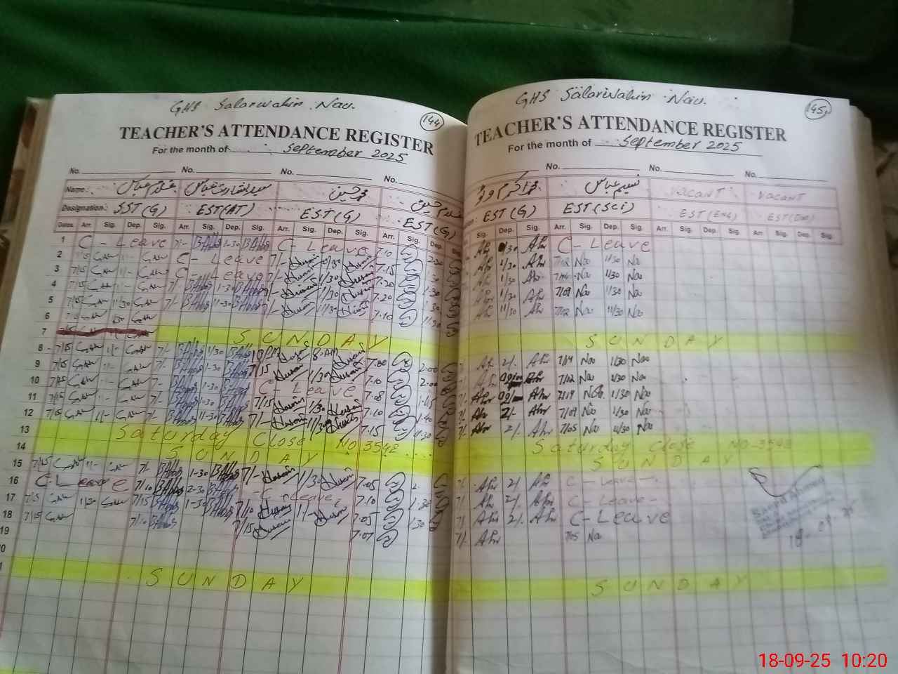 | Monitoring Date: 18-09-2025 | Start Time: 18-09-2025 09:06 AM | End Time: 18-09-2025 10:25 AM | Name of MEA: Sa**** Ah**** | |