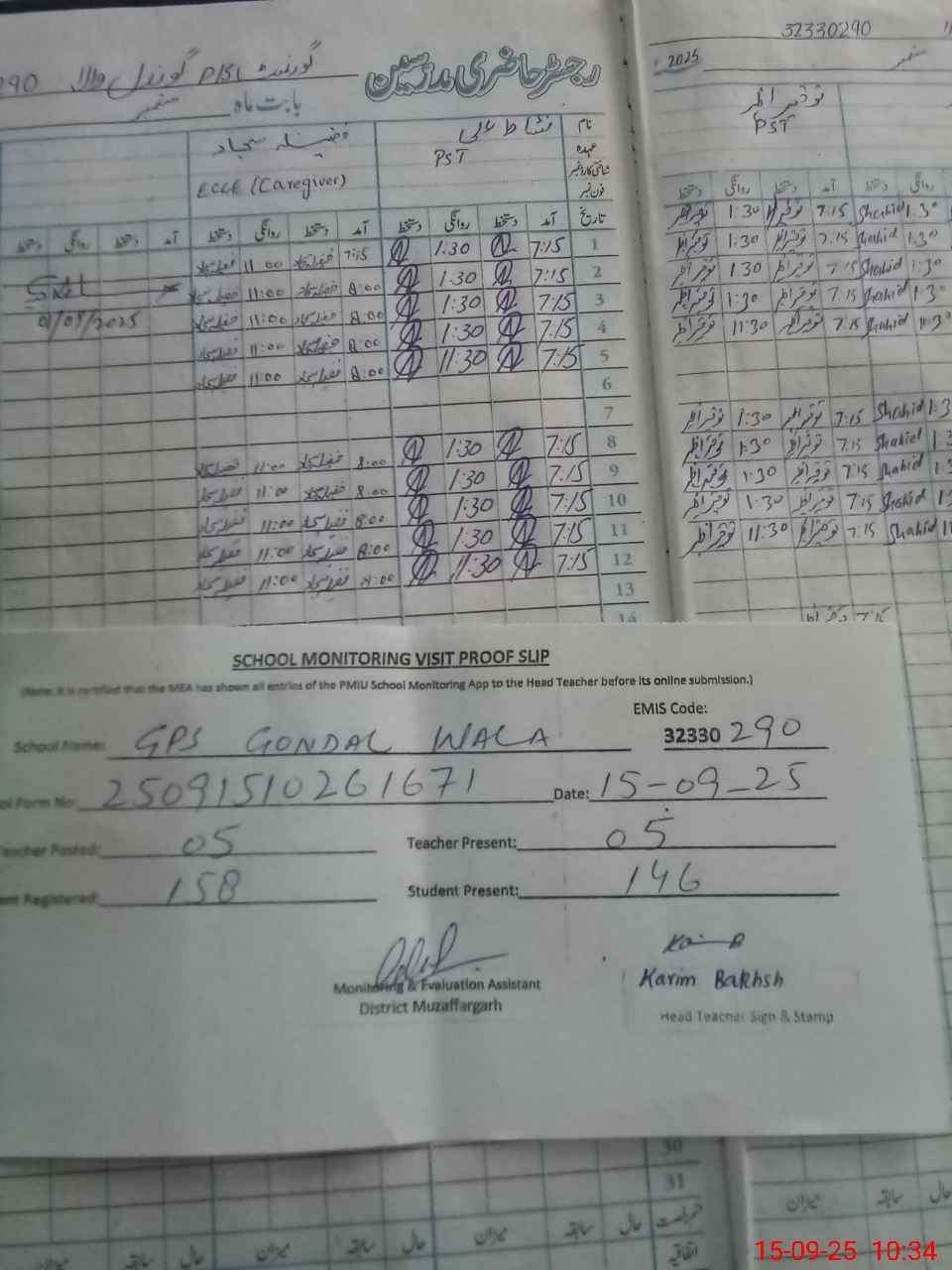 | Attendance Register | Head Teacher | MEA with School | Visit Proof |