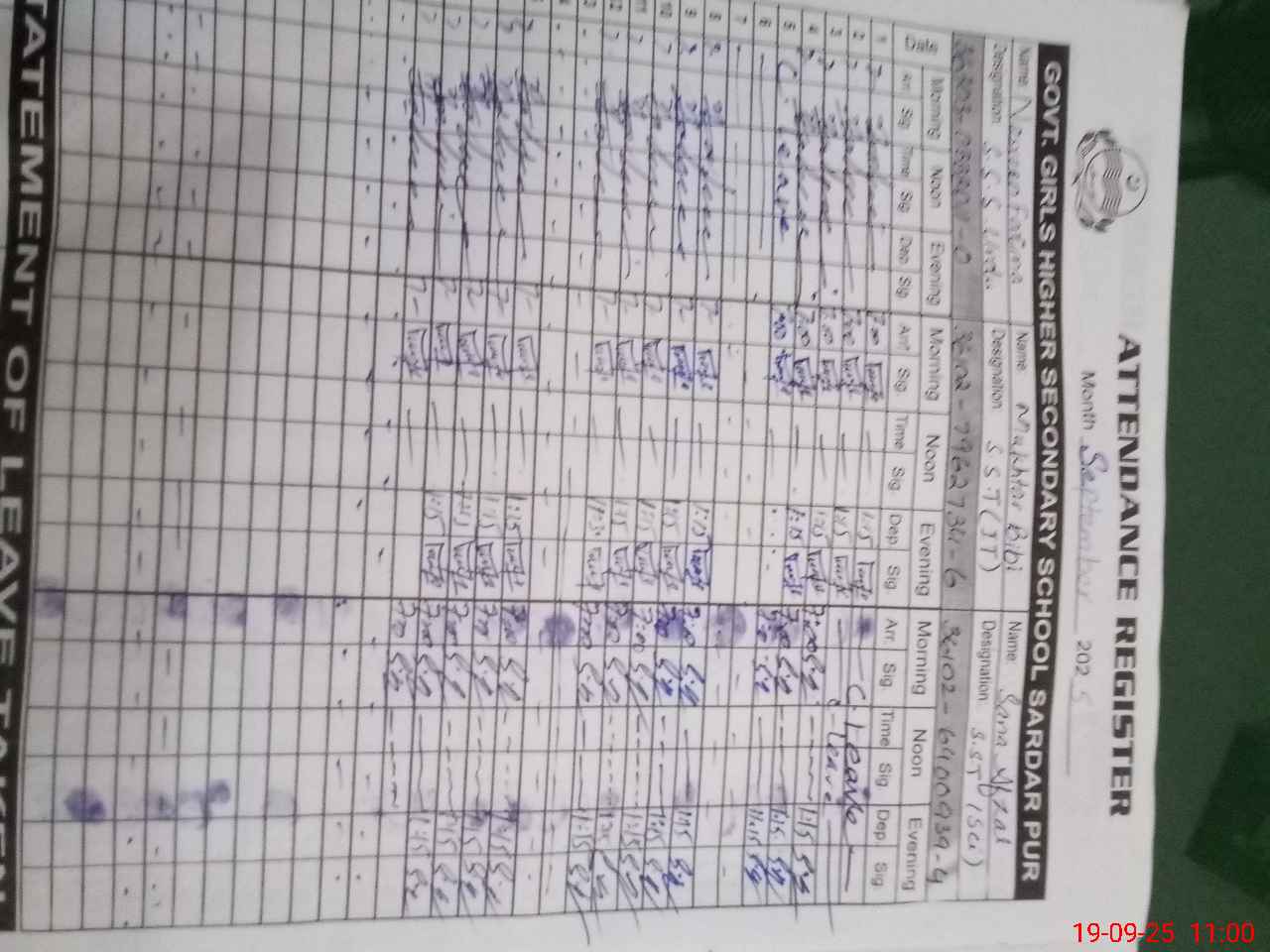 | CNIC | Full Name | Designation | R/C | Absence During Last Calender Month |