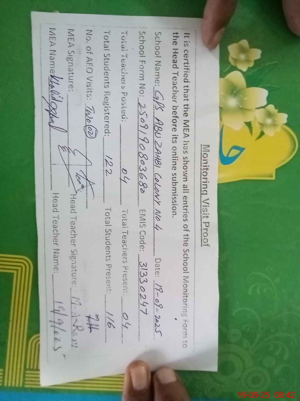 | EMIS Code: 31330247 | Name of School: GPS ABU ZAHBI COLONY NO. 4 | |||