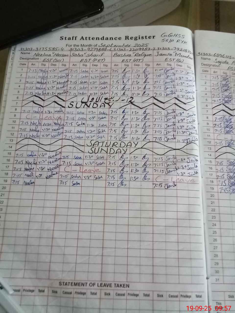 | CNIC | Full Name | Designation | R/C | Absence During Last Calender Month |