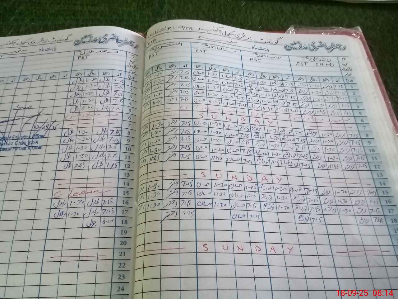 | CNIC | Full Name | Designation | R/C | Absence During Last Calender Month |