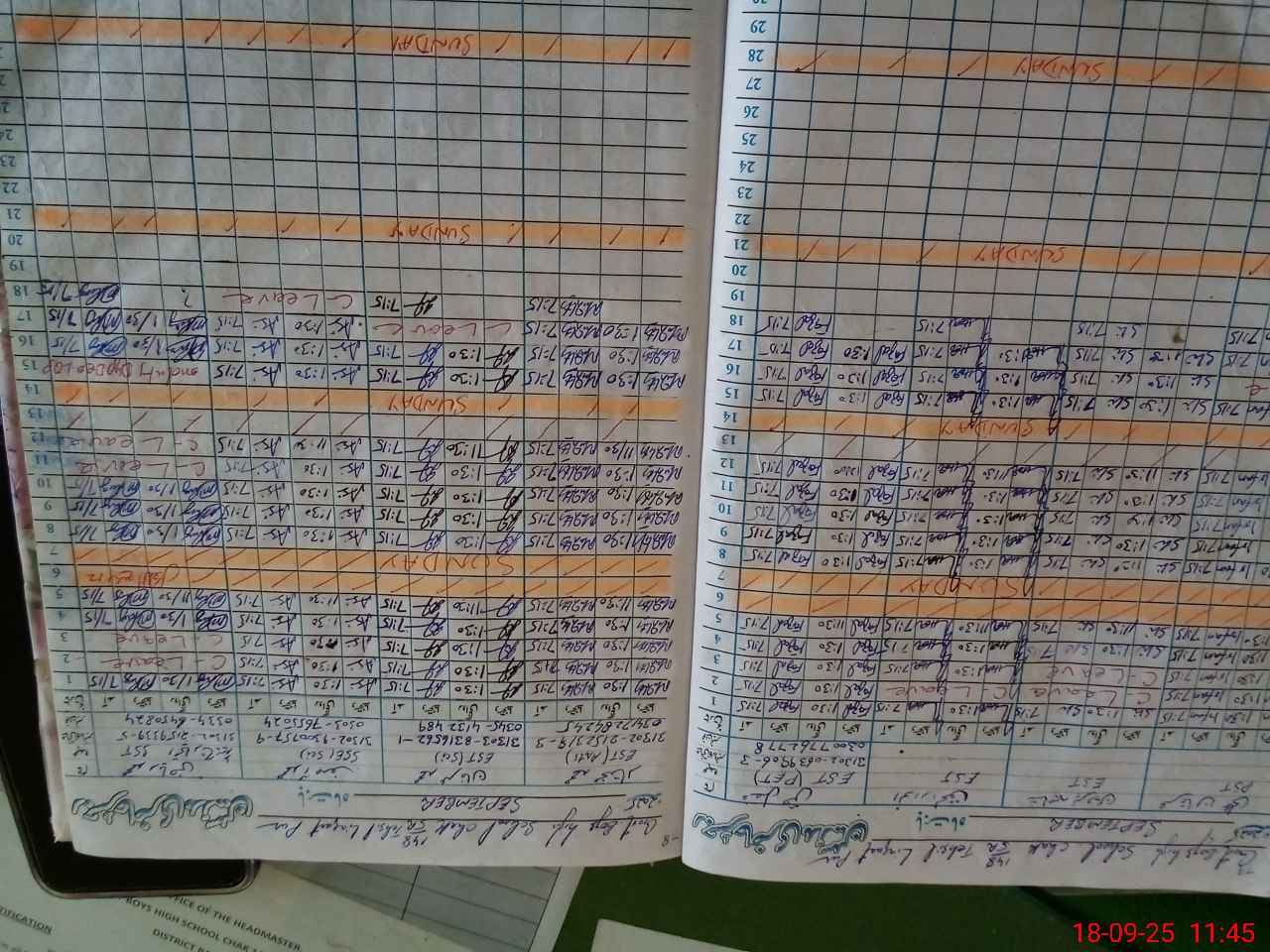 | No. of Students Present - Male | 15 | 0 | 17 | 14 | 13 | 17 | 30 | 18 | 21 | 30 | 18 | 14 | 18 | 225 | ||
