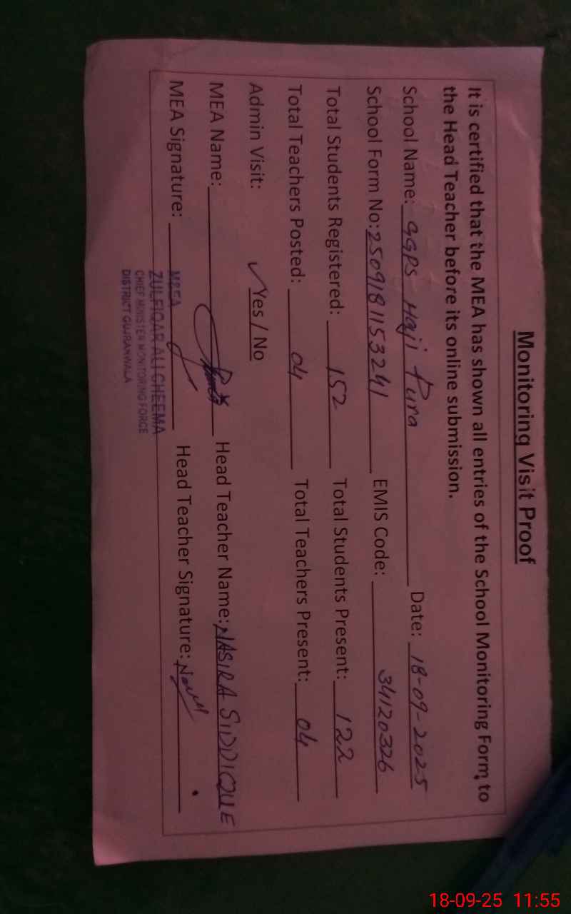 | EMIS Code: 34120326 | Name of School: GGPS HAJI PURA | |||