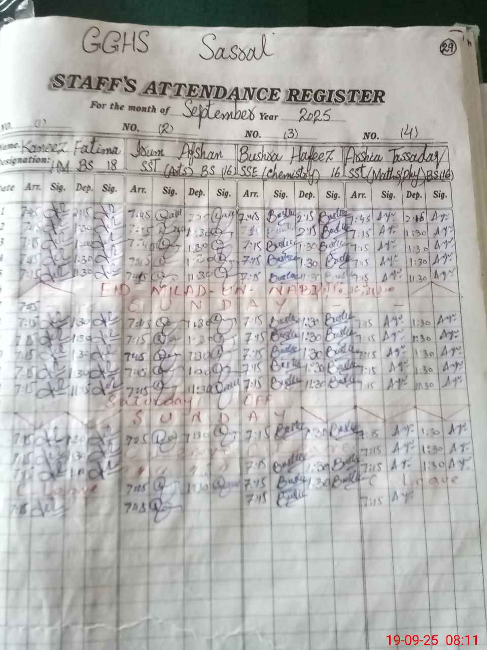 | Name: KA**** FA**** Designation: (School Headmaster's/Headmistress's) Head Mistress Phone/Cell Number: 03**** |