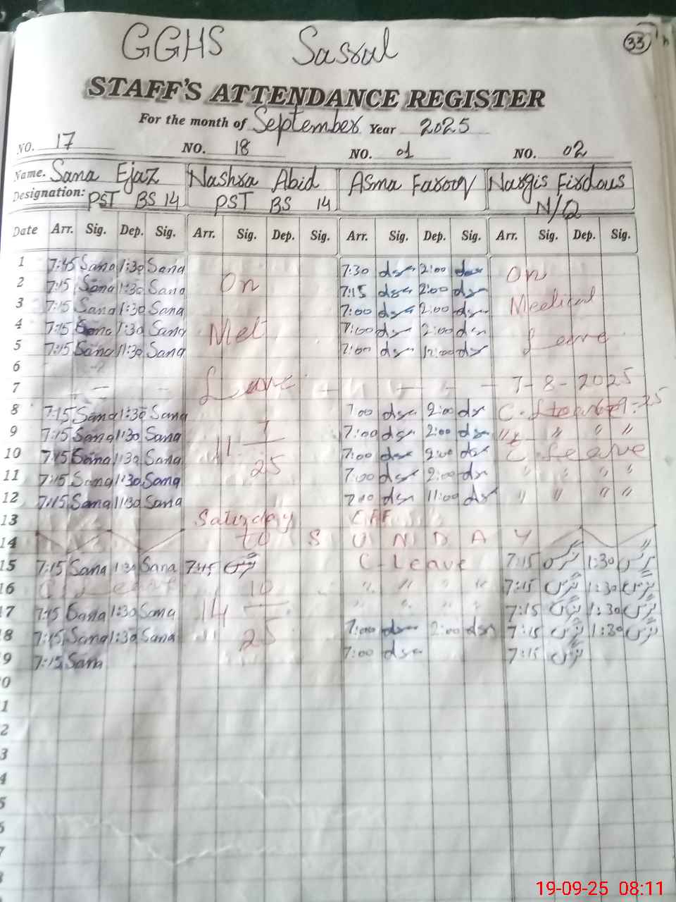 | 37**** | Na**** Ab**** | PST | Regular | 0 | 0 | 0 | 0 | 0 | 0 | 0 | 0 | 0 | Maternity |