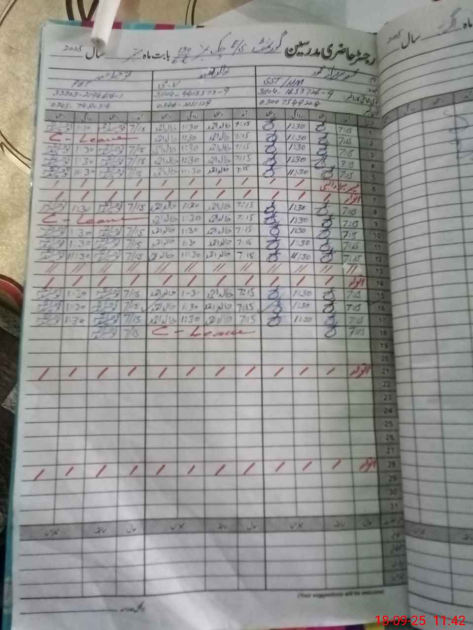 | CNIC | Full Name | Designation | R/C | Absence During Last Calender Month |