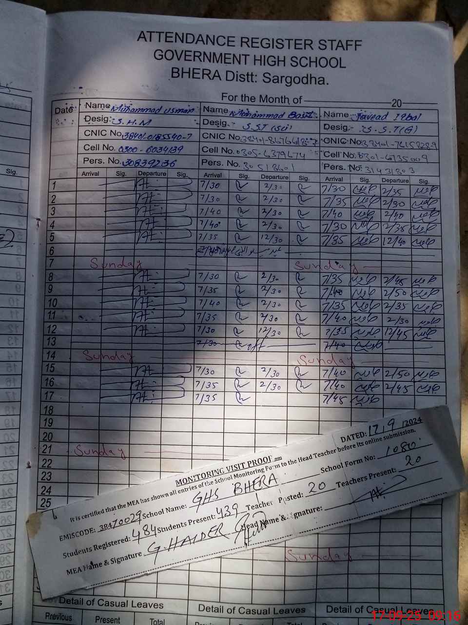 | Name: MU**** US**** Designation: (School Headmaster's/Headmistress's) Sr. HEADMASTER Phone/Cell Number: 03**** |