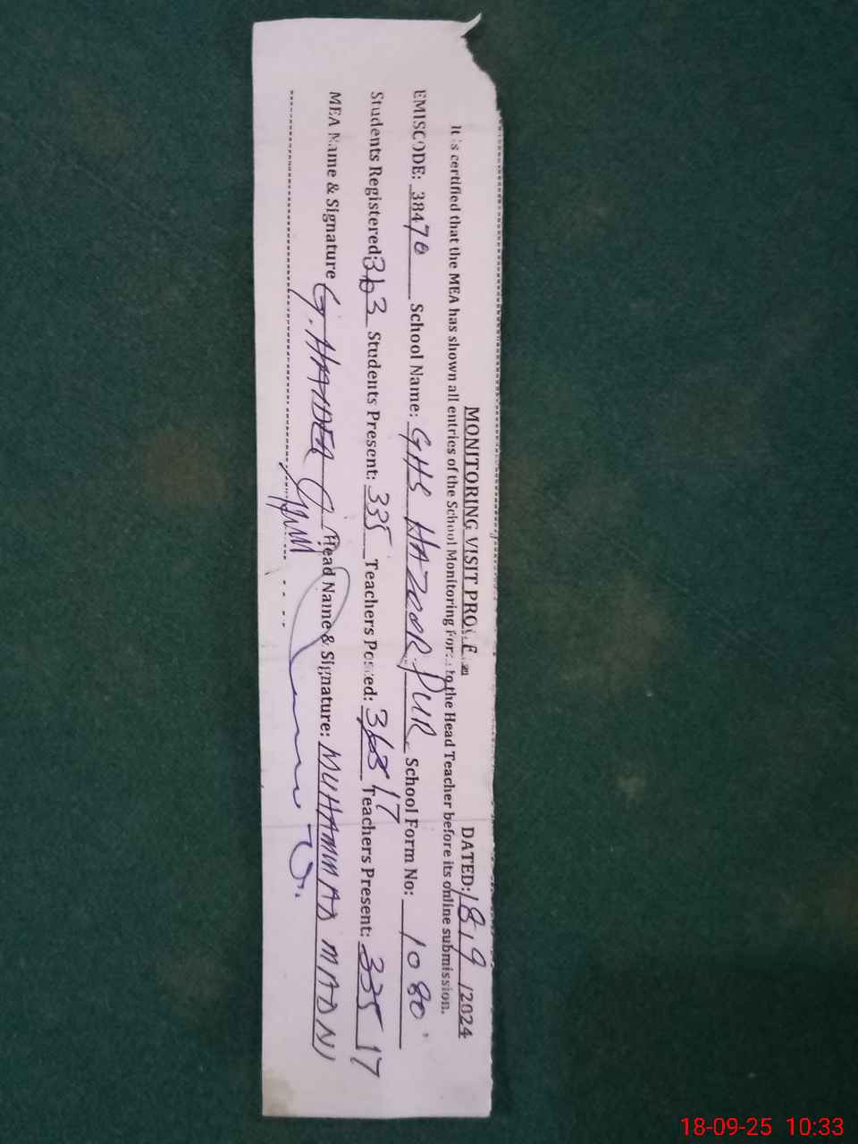 | EMIS Code: 38470026 | Name of School: GHS HAZOOR PUR | |||
