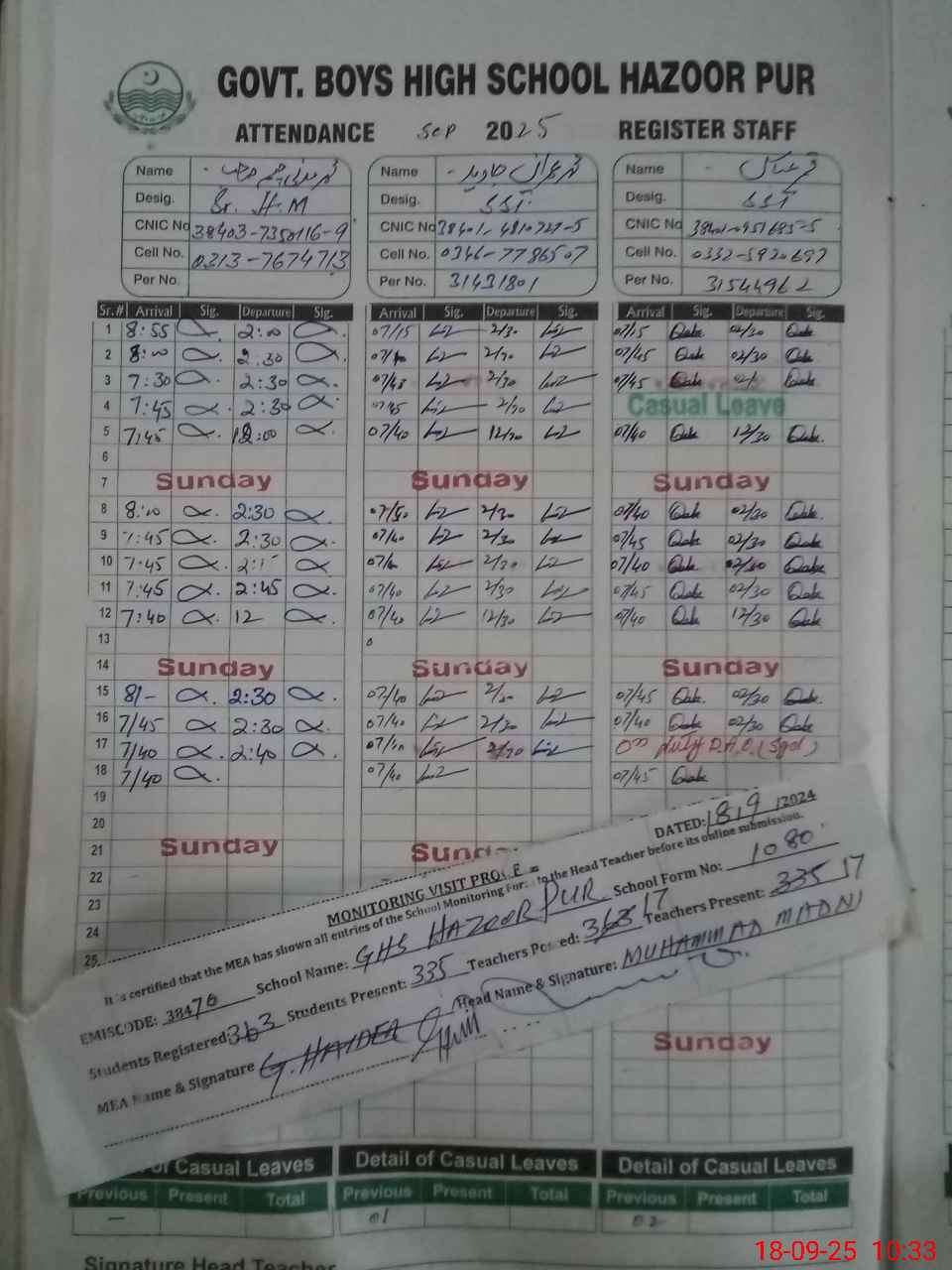 | Name: Qa**** Ab**** Designation: (School Headmaster's/Headmistress's) SST Phone/Cell Number: 03**** |
