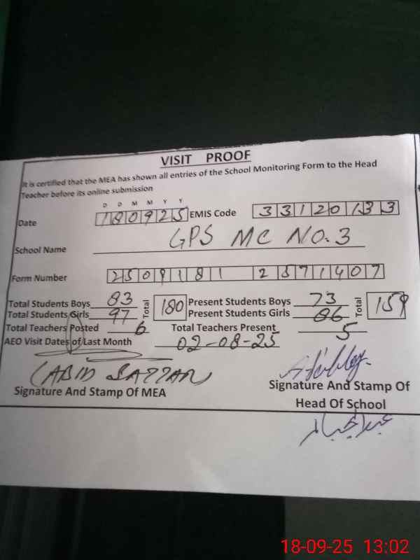 | EMIS Code: 33120133 | Name of School: GPS MC NO. 3 JARANWALA | |||