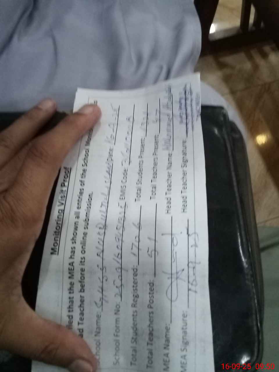 | Certified that this School was Inspected by the Undersigned MEA/DMO Today and the Information Stated Above is as Per Record. | |||||