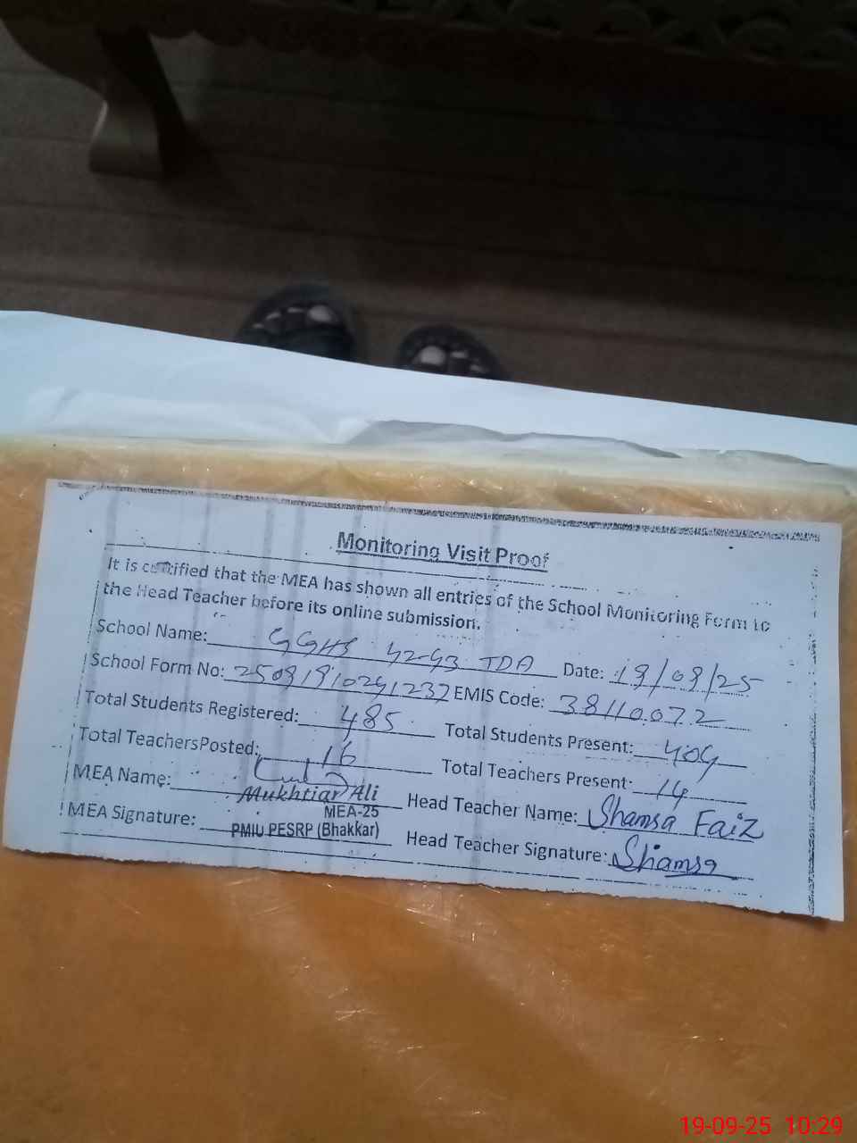 | EMIS Code: 38110072 | Name of School: GGHS CHAK NO. 42-43 TDA | |||