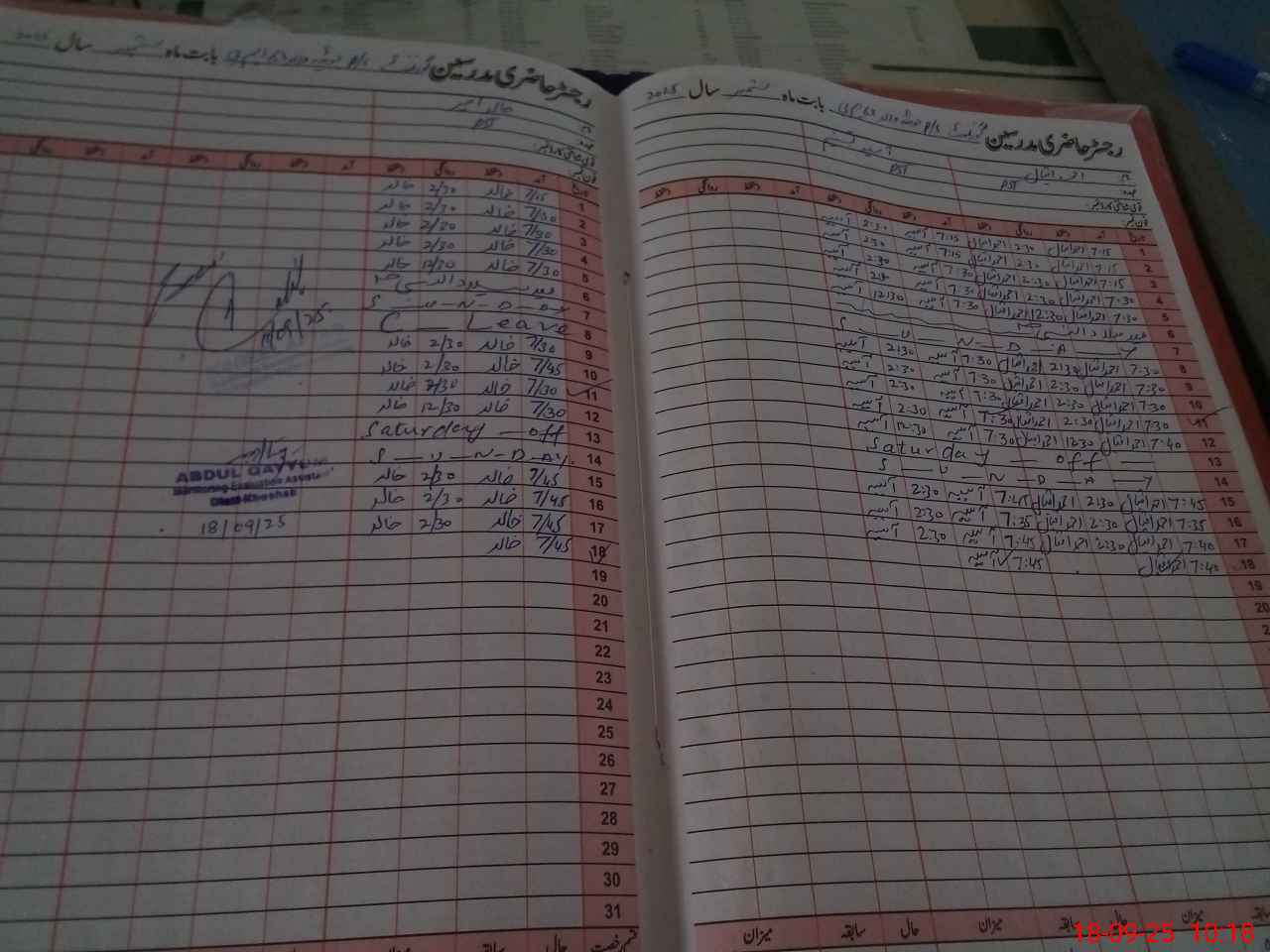 | CNIC | Full Name | Designation | R/C | Absence During Last Calender Month |