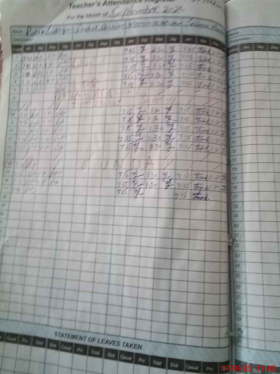 Leave Type | Remarks for today (Leave,Training, Exam,Absent,Late, Other duty) |