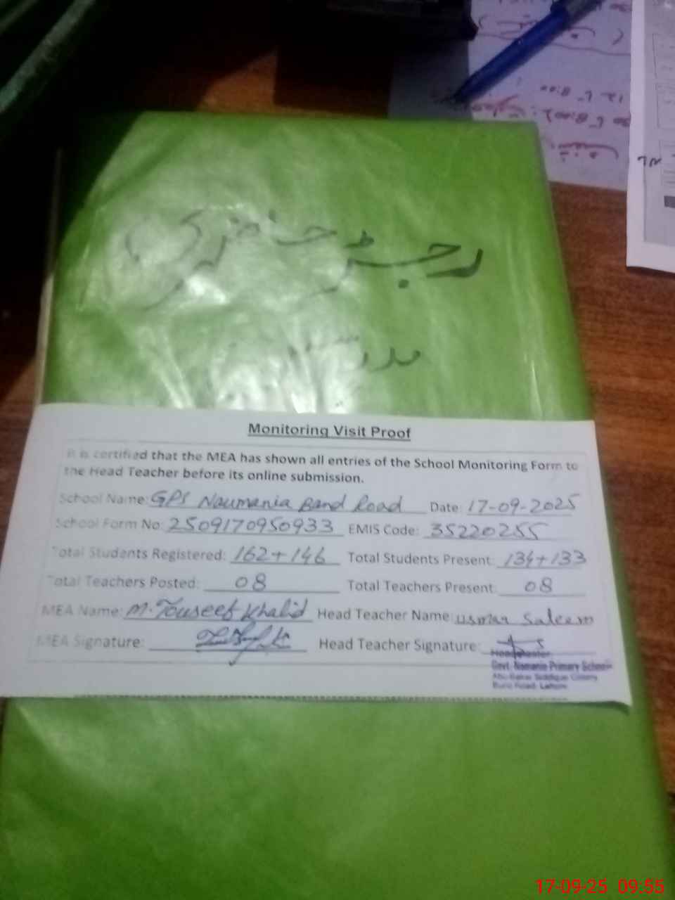 | EMIS Code: 35220255 | Name of School: GPS NAUMANIA BUND ROAD | |||