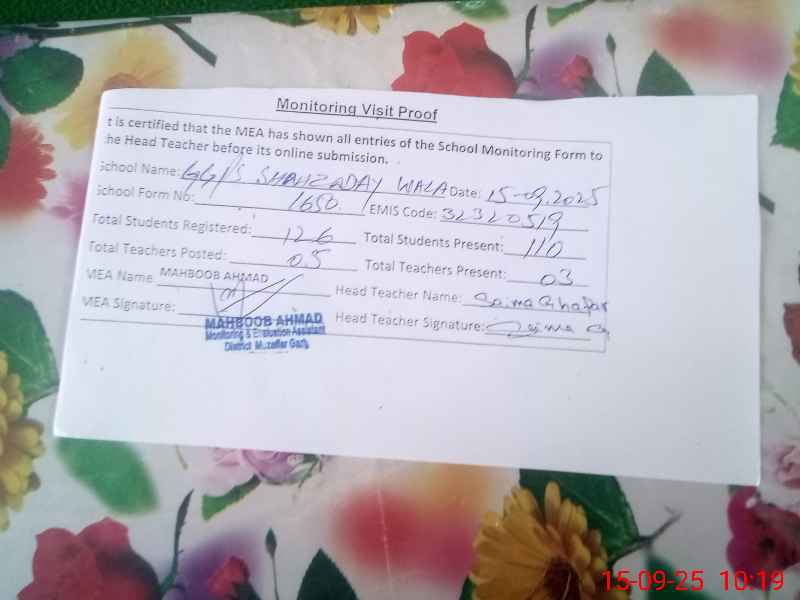 | EMIS Code: 32320519 | Name of School: GGPS SHAHZADAY WALA | |||