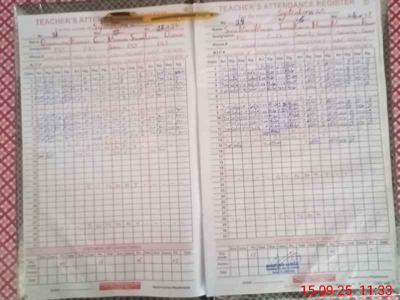 | CNIC | Full Name | Designation | R/C | Absence During Last Calender Month |