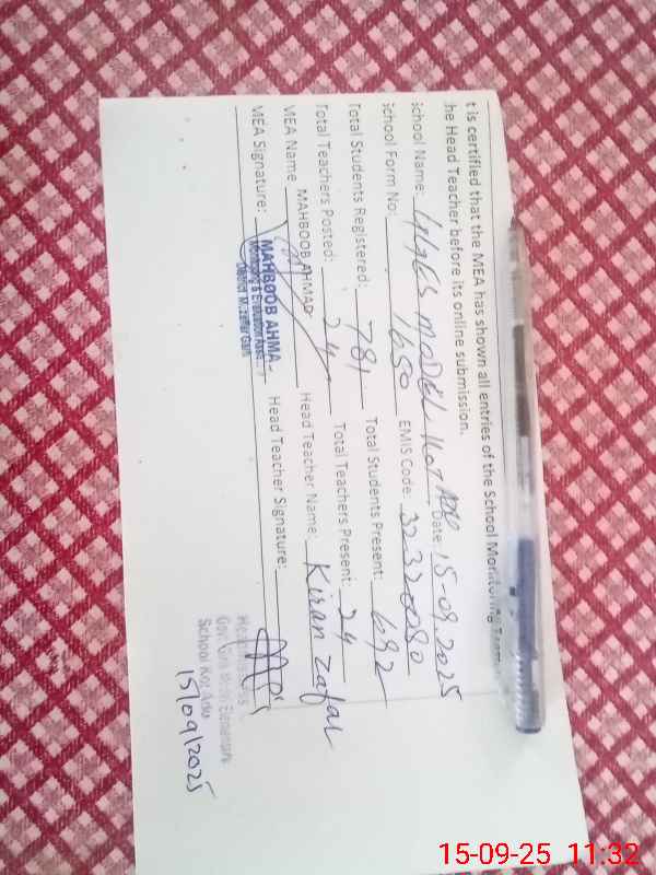| EMIS Code: 32320080 | Name of School: GGES MODEL KOT ADU DOUBLE SHIFT | |||