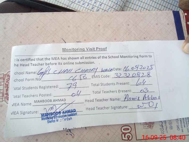 | EMIS Code: 32320828 | Name of School: GPS CHAH CHATTEY WALA | |||