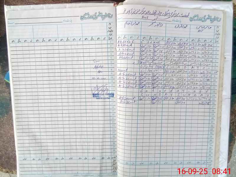 | CNIC | Full Name | Designation | R/C | Absence During Last Calender Month |