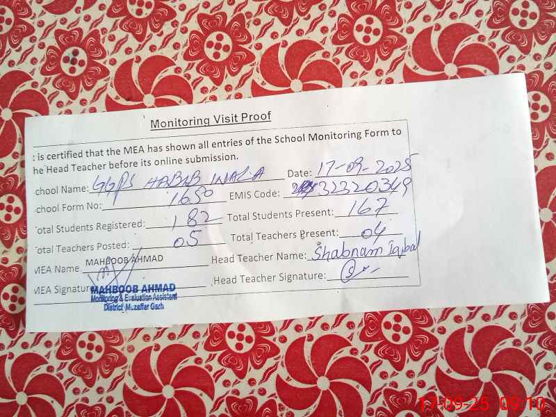 | EMIS Code: 32320349 | Name of School: GGPS HABIB WALA | |||