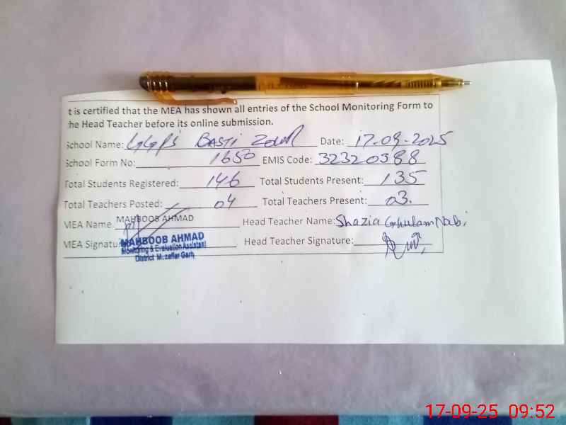| EMIS Code: 32320388 | Name of School: GGPS BASTI ZOUR | |||
