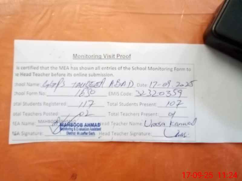 | EMIS Code: 32320359 | Name of School: GGPS TOUQEER ABAD | |||