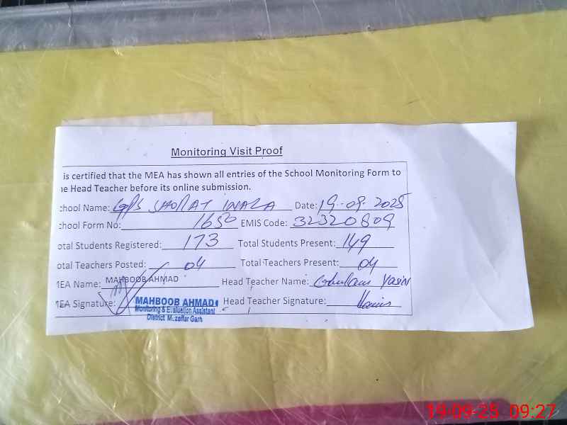 | EMIS Code: 32320809 | Name of School: GPS SHOHRAT WALA | |||