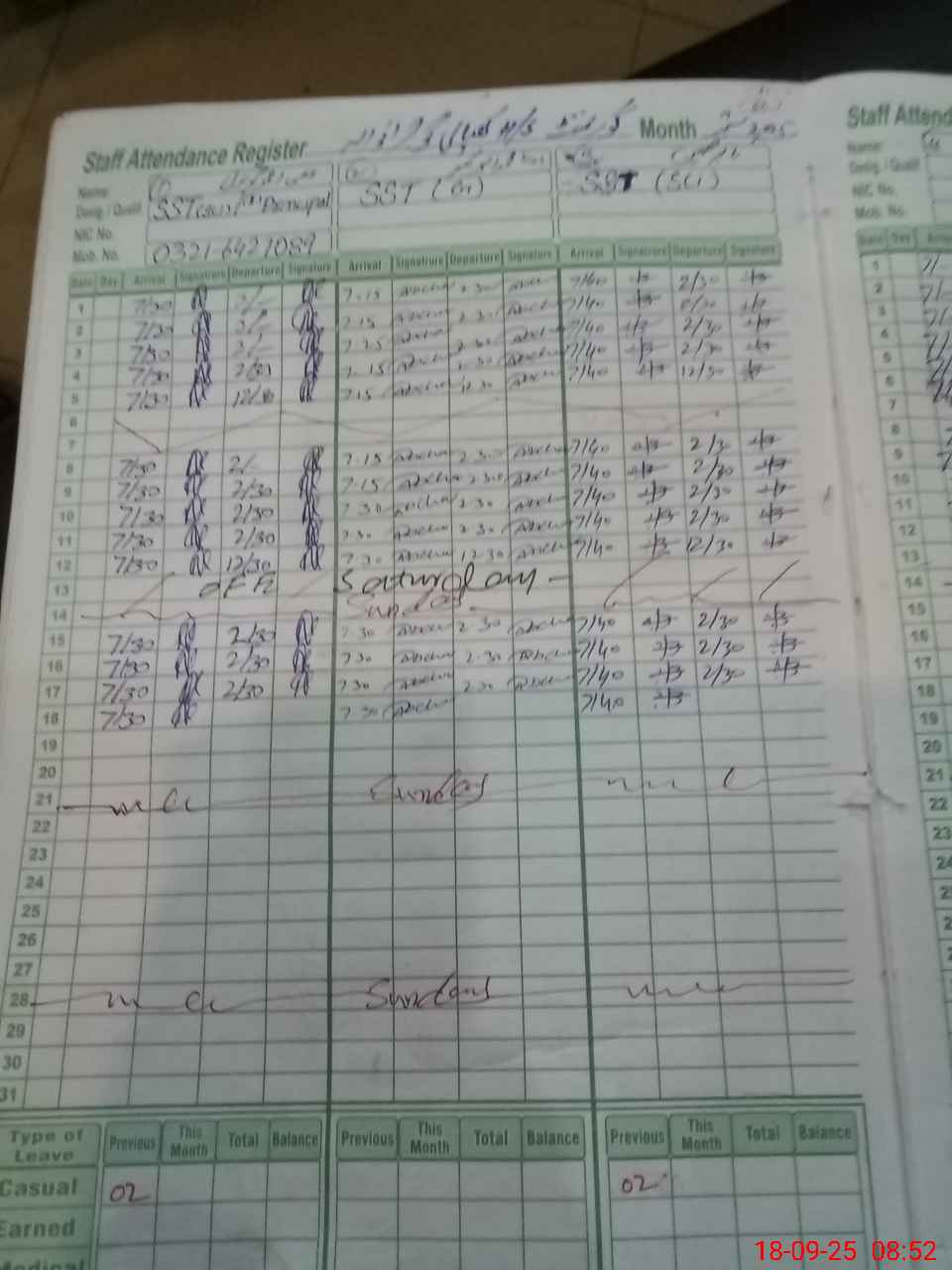 | 34**** | Ab**** Ma**** | CHOWDER | 0 | 0 | 0 | 0 | 0 | 0 | 0 | 0 | 0 | Absent (Un-Authorized) | |
