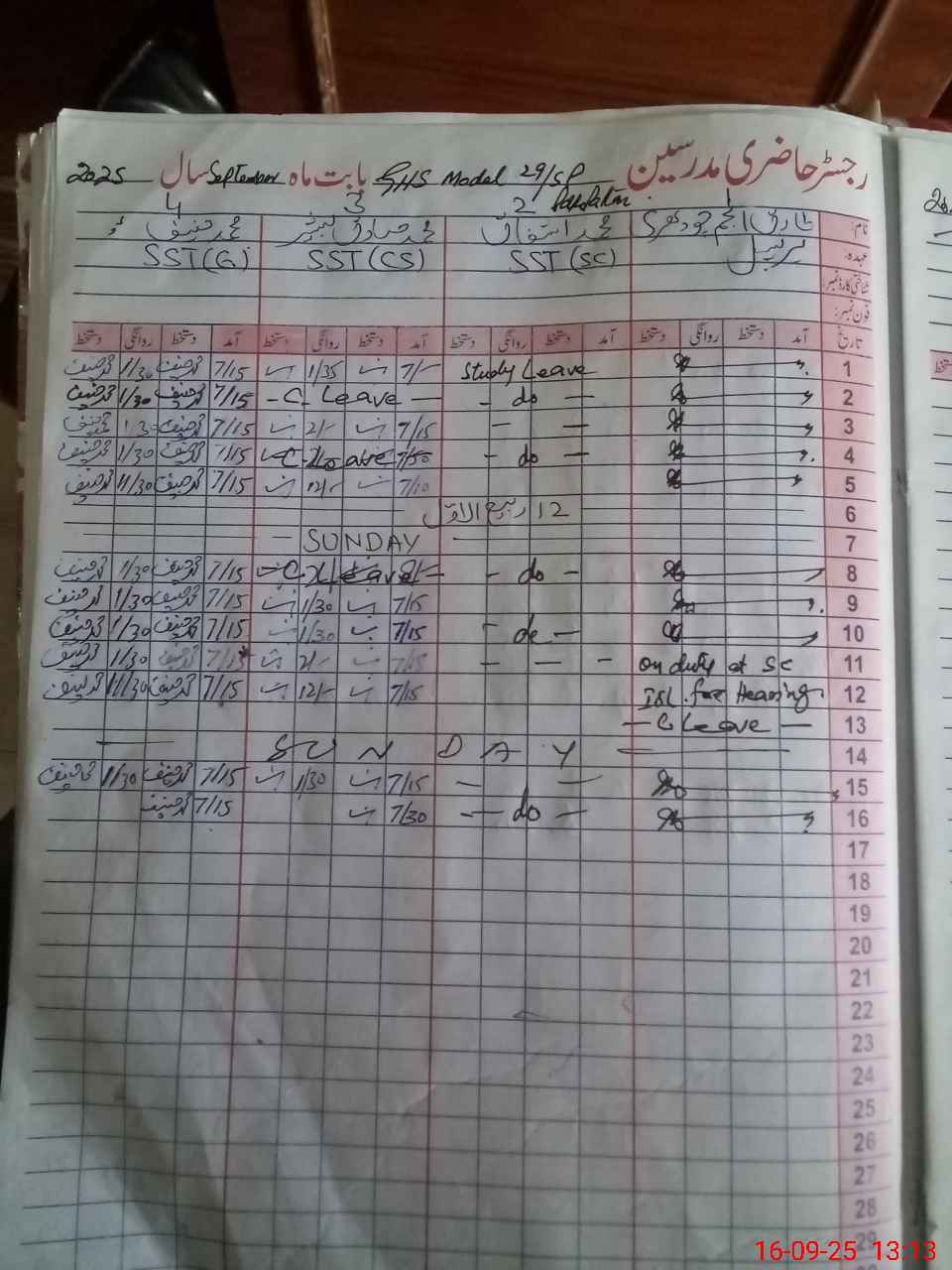 | CNIC | Full Name | Designation | R/C | Absence During Last Calender Month |