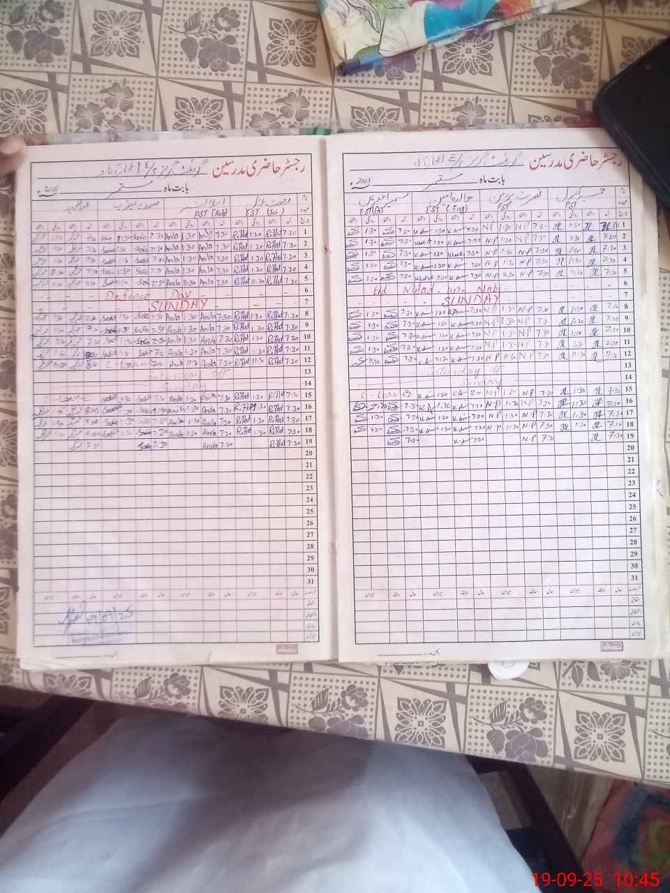 | CNIC | Full Name | Designation | R/C | Absence During Last Calender Month |