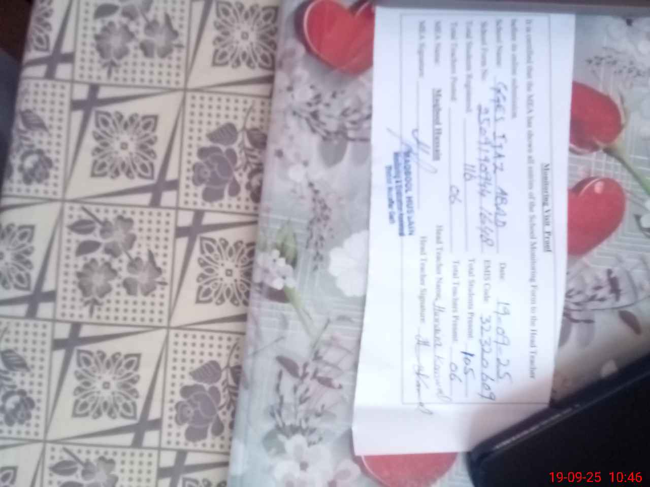 | Certified that this School was Inspected by the Undersigned MEA/DMO Today and the Information Stated Above is as Per Record. | |||||