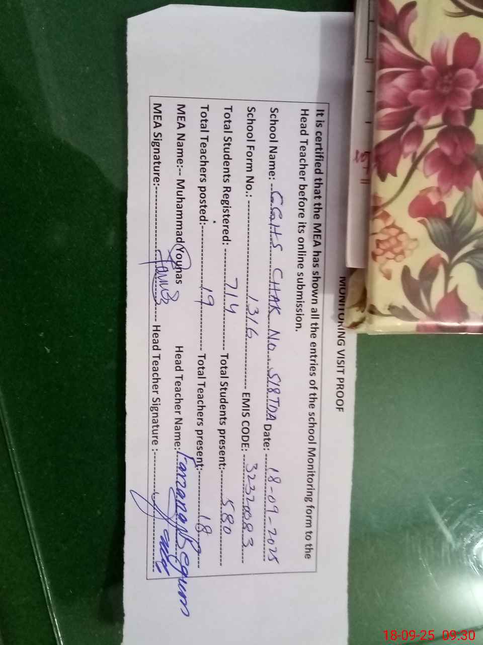 | EMIS Code: 32320083 | Name of School: GGHS CHAK NO. 518/TDA | |||